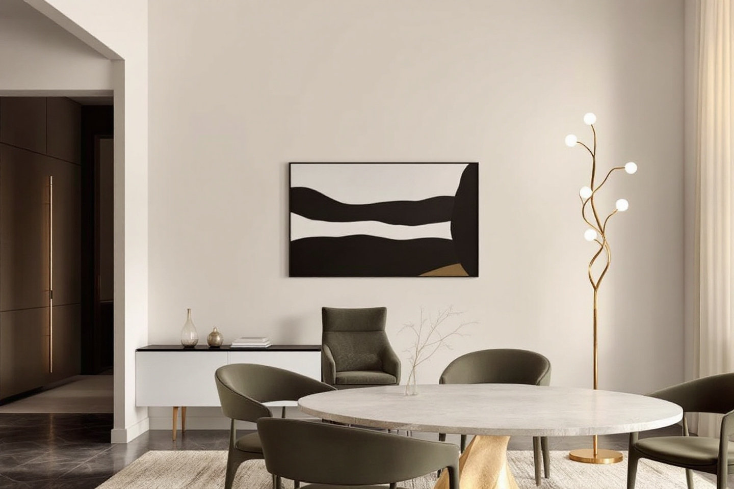 Skulpturalne svetilke leta 2026 niso samo vir osvetlitve – so popolni plesni partnerji za ukrivljeno pohištvo tega obdobja, ki odmeva njegove organske oblike in ustvarja kohezivne, galerijsko podobne notranjosti. Predstavljajte si obesno svetilko z valovitimi senčili iz matiranega stekla, ki visi nad mizo z valovitimi nogami, ali pa talno svetilko v obliki zvitega trsa, ki odraža mehčobo polnega kavča iz bouclé. Te svetilke so izdelane iz materialov, kot so mat keramika ali patinirana medenina, in oddajajo dinamične, mehke sence, ki izboljšajo umetniško pripoved prostora. Razvile so se iz izrazite osvetlitve leta 2025 in se ujemajo z »udobnim kaosom« leta 2026, saj združujejo taktilno toploto z drzno obliko, da bi prostori izgledali inovativno in vabljivo.